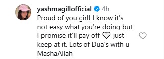 Actress Yashma Gill, also a restaurateur, sent prayers and said her hard work would eventually pay off. She commented: