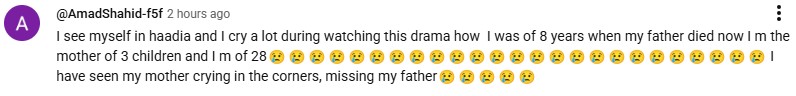 A viewer shared how she went through the same experience as Hadia, as she lost her father when she was 8 years old. She said: