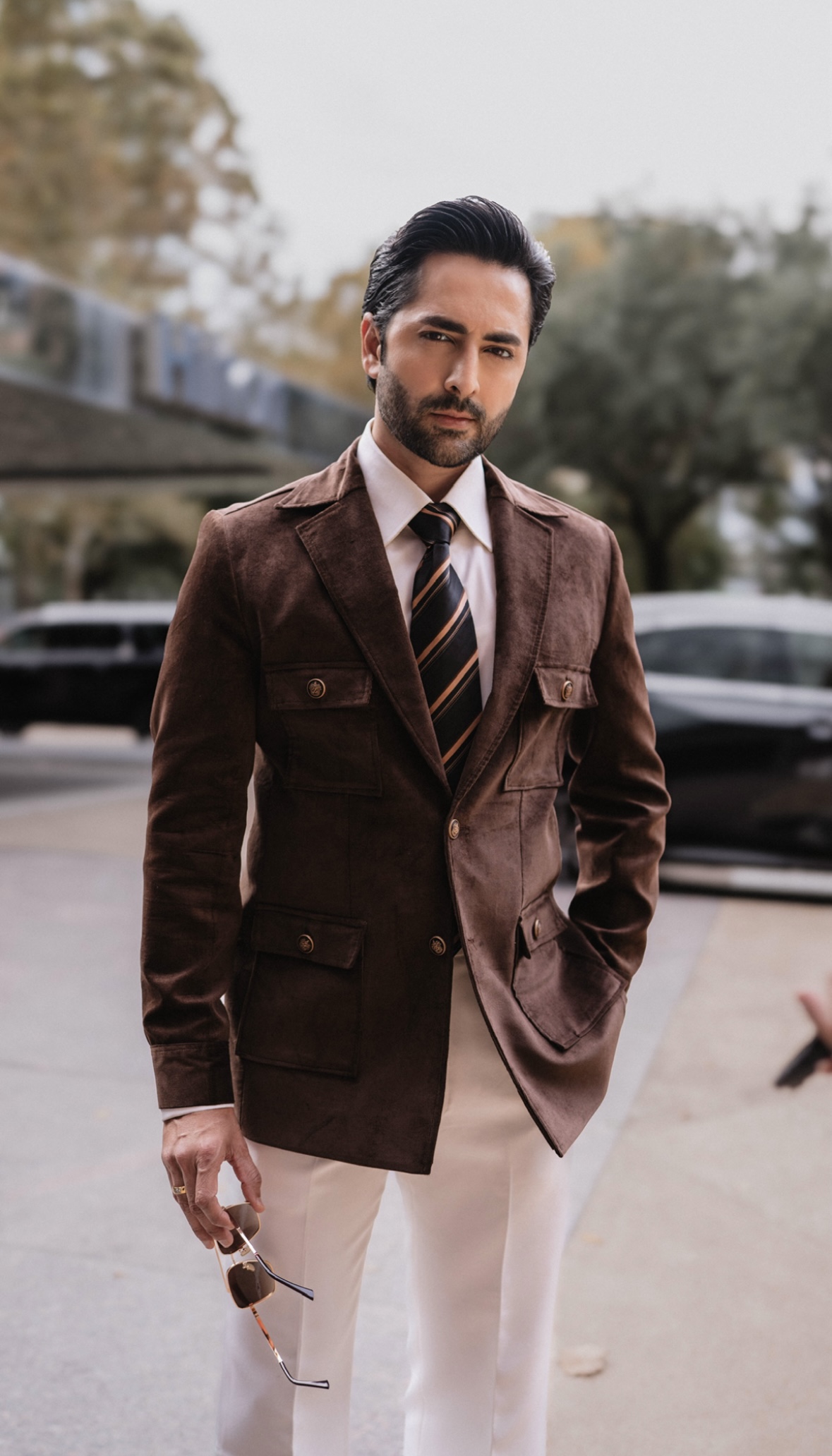 It has been said that Emraan Rajput’s clothes have a way of fitting a person, not just in a manner of fashion but in a manner of persona. When we last saw Danish’s spiffed looks during the hit drama Sher, we were in awe of how effortlessly the suits made the man and breathed life to a character that is so magnetic.And the designer muse duo strikes yet again as Danish Taimoor leaves his style imprint during his US tour with sheer sophistication and unique charm in customised velvet suits curated and designed by none other than Emraan Rajput!