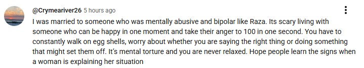 Viewers can find bone-chilling similarities to their lives, as many women share how they have been trapped in an emotionally abusive and damaging marriage. Netizens share their experiences, underscoring that Malika’s story is not only important but also common in our society. A user commented: