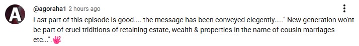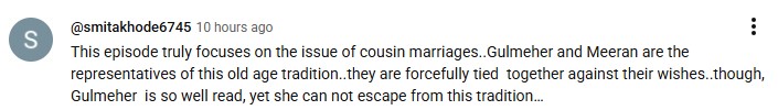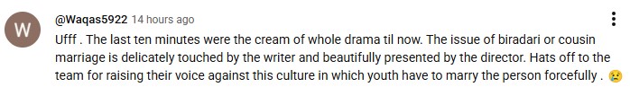 Where Meeran and Gul are told to adjust and accept their relationship like all the previous generations, Meeran shuts it down by saying that this trauma would end with him. Gul and Meeran refuse to suffer the way their ancestors did by accepting partners in marriage with whom they had shared a sibling bond. He said that not everyone can accept a woman as their wife whom they had been referring to as “sister” all their lives.