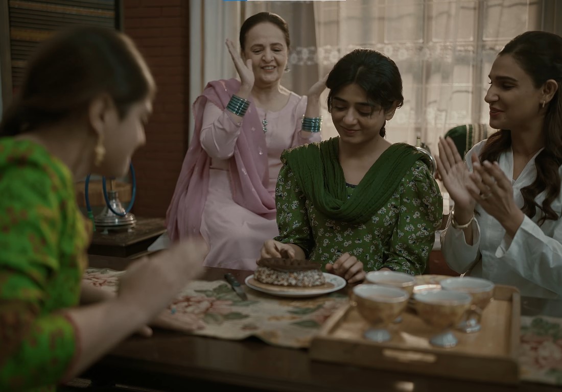 Saman (Amna Ilyas), her lawyer, disagrees with her decision to accept a financial settlement, but still manages to celebrate her happiness. Mummy Jee (Hina Bayat Khan), who keeps pointing out her inability to fight for her rights, tries to make it more of a celebration for Pakeezah. Noor Bhari (Namra Shahid), unaware of the situation, tells Pakeezah that there is no harm in claiming the financial settlement. Women with diverse perspectives came together to celebrate a woman broken by society. With each carrying a load on their shoulders, they took a moment of relief, hope and joy.