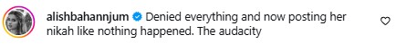 Soon enough, the internet came to her support and bashed the new couple. Commenting on her post, influencer Alishbah Anjum said: