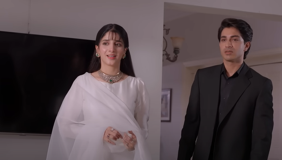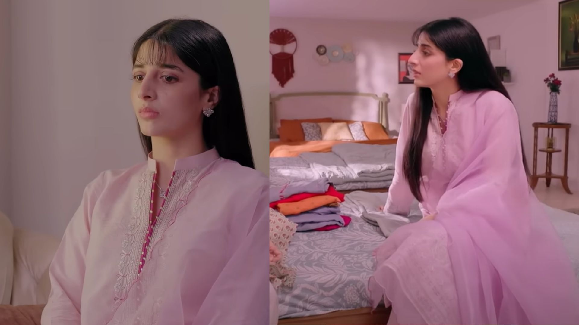 Laila reminds her in-laws subtly that she won’t bow down to their controlling nature so easily, while also looking like a pastel dream in this scene. In episode 6, she looked gorgeous in this light purple ensemble by Coco by Zahra Shahjahan, while politely letting her bhaabhi know that pushing children into adult feuds was a petty thing to do.