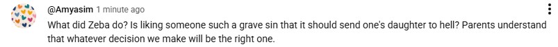 Zeba’s parents did not think twice and accepted the first proposal out of fear, and this did not sit well with the audience; a user stated: