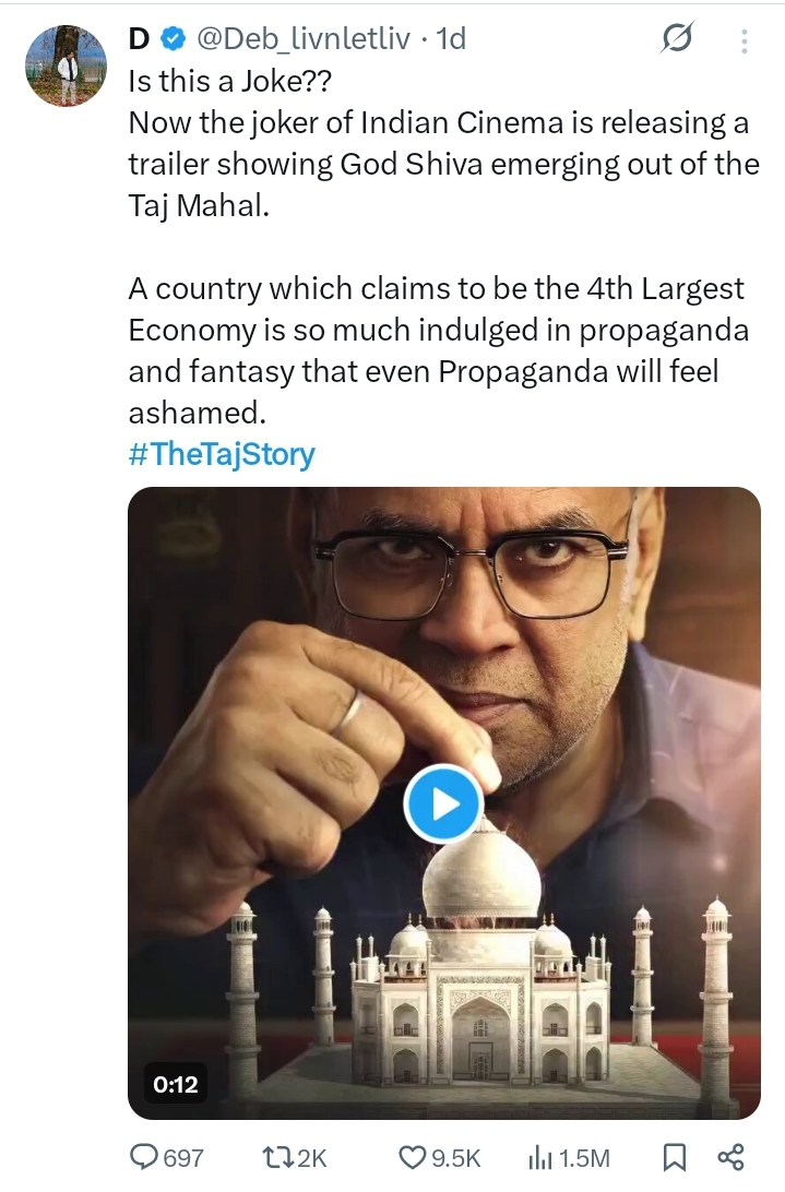 That being said, it can not sway away the fact that a Hindu god emerges rom the Taj Mahal dome in the movie poster.