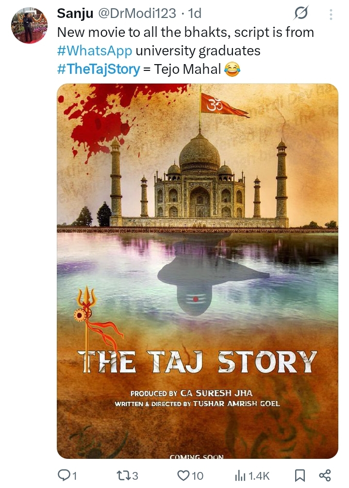 The film also challenges the fact if the Taj Mahal was truly built by Shah Jehan. If aims to erode the centuries of Mughal rule in the sub-continent and historical supremacy of Mulsims in the region. Such historical distortion to satisfy the extremist ego of the Modi regime has been widely opposed.