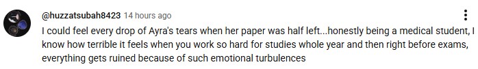 While the makers of the drama serial focus on the developing romance between Ayra and Kamyar, the audience is more invested in Ayra’s medical degree. A user posted on X stating that while the scene was cute, it would have been better if it were not during her exam: