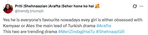 A fan added that they are anxious about how the story will unfold for Ayra and Kamyar, who are now moving towards marriage, just as Shehnaaz did. They stated: