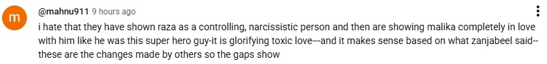 Raza being presented as a hero despite being toxic and narcissistic is not liked by the audience either. Stating that this arc supports toxic love, a user commented:
