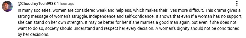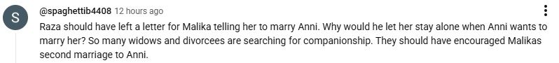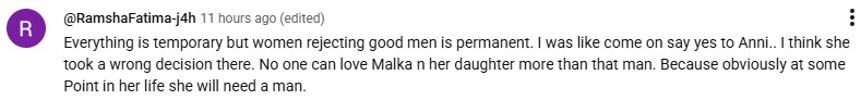 However, many wanted a happy ending for Anni and for Malika, who would find companionship after her experience with Raza. A user stated that, though it is good to be independent, remarriage is encouraged. They commented: