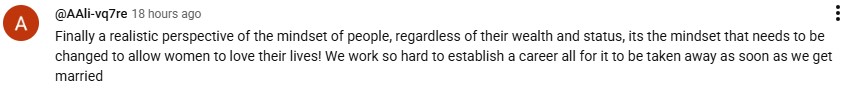 Holding onto how the patriarchal mindset flows into the elite class as well, a netizen said: