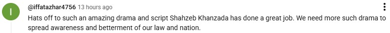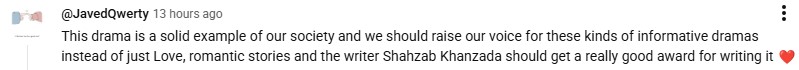 One stated that such drama serials must be appreciated and be produced more often. They posted: