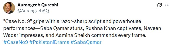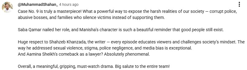 Another viewer stated that Case No. 9 has set a new benchmark for the Pakistani drama industry and deserves a standing ovation. They posted: