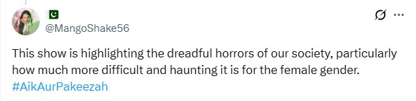 A viewer pointed out that men around Pakeezah believe their lives are falling apart, even though they are living normally. However, Pakeezah is locked up in a room, unable to find even a gush of fresh air. Calling it society’s hypocrisy, they posted on X: