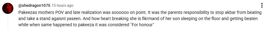 Aliya’s understanding of the committed crimes deciphers that society holds a bias towards their sons, who then have the liberty to commit an offense and get away with it. The depth of the conversation traces the drama serial’s primary idea: the woman is held accountable for the crime committed against her, while society mourns when a man is ultimately held accountable. The invested Aik Aur Pakeezah believes it to be the crux of the drama serial; a user posted on X and said: