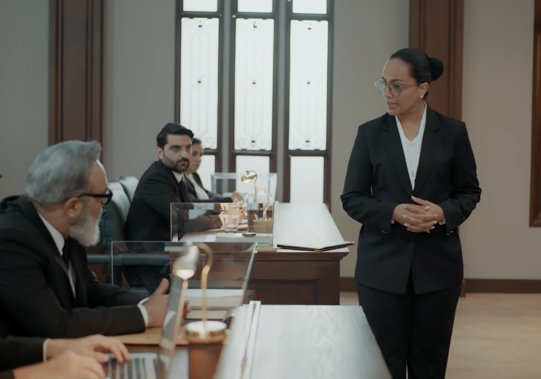The prosecution lawyer, Beenish(Amina Sheikh), quotes remarks from renowned real-life judges, Justice Ayesha Malik and Justice Mansoor Ali Shah, who have played a vital role in evolving rape case hearings and judgments in Pakistan.