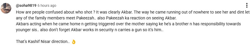 With attention to detail and clashing emotions, Aik Aur Pakeezah viewers became the investigators of Faraz’s shooting and were quick to pin their suspicion on Akbar. Pointing out the blame in Pakeezah’s eyes and overcompensation by Akbar, a netizen stated that it was Akbar who shot Faraz. They posted on X: