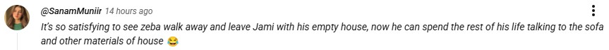 Another netizen added that it was satisfying to see Zeba finally let go of Jami and posted: